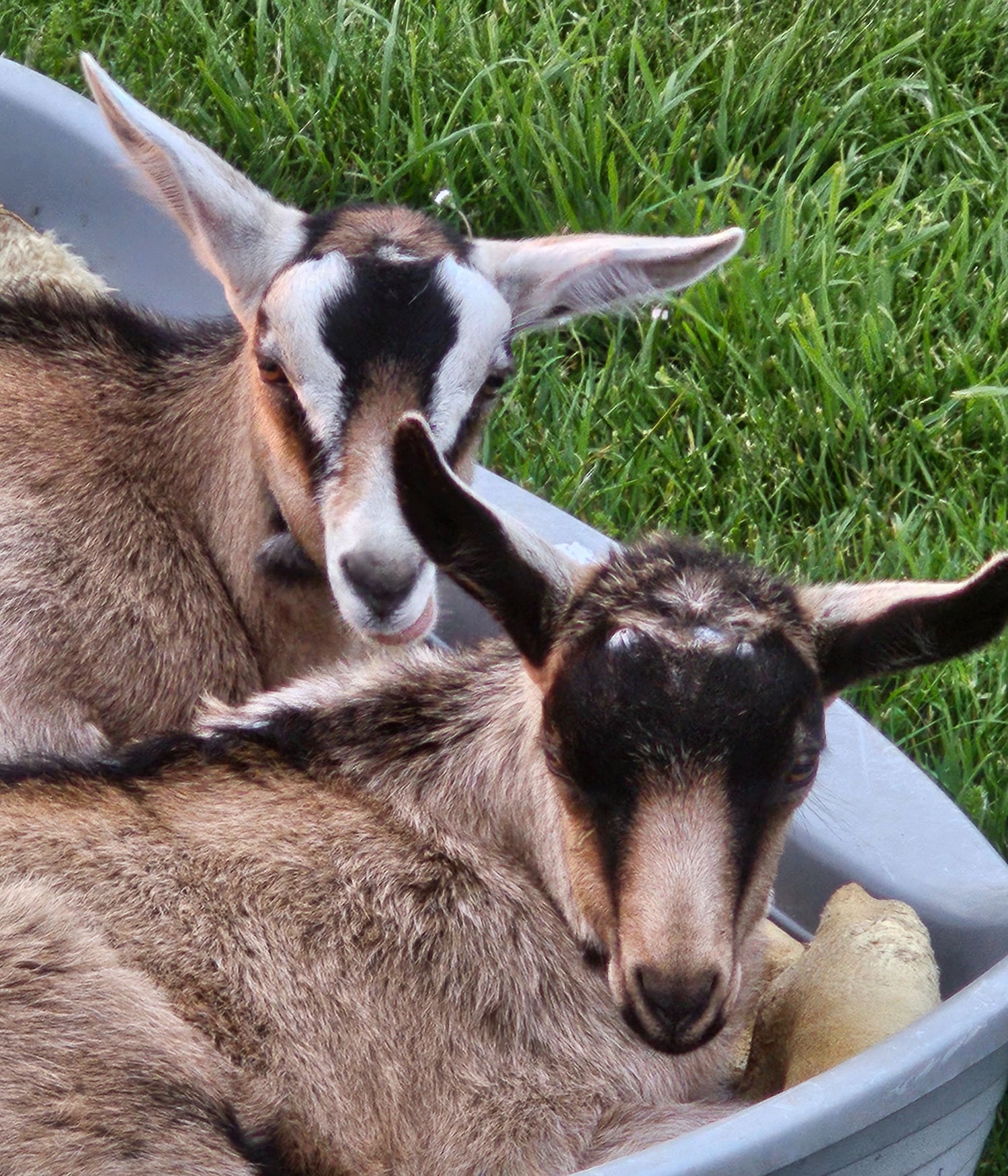 Naughty naughty goats, so mischievous and always up to no good! If I leave a gate open they are as quick as lightning… eating the plants. These goats are a rare breed. Both their mothers are Sable goats and used for milking. They are delightful characters with great personalities who want attention all day long.