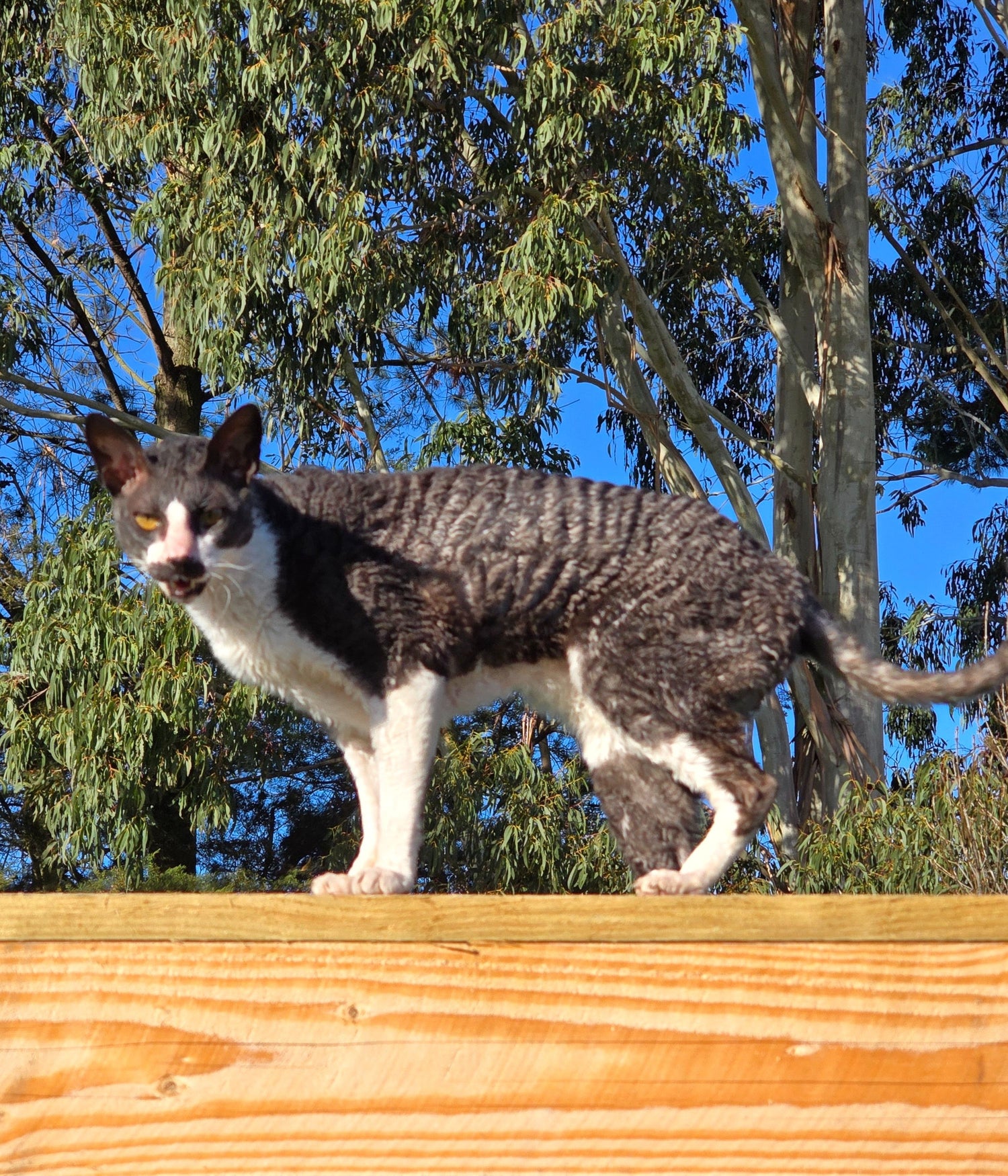 My beautiful Cornish Rex has just turned 8 years old. He loves to be cuddled and super friendly. He has two full brothers Pickles and Preston.