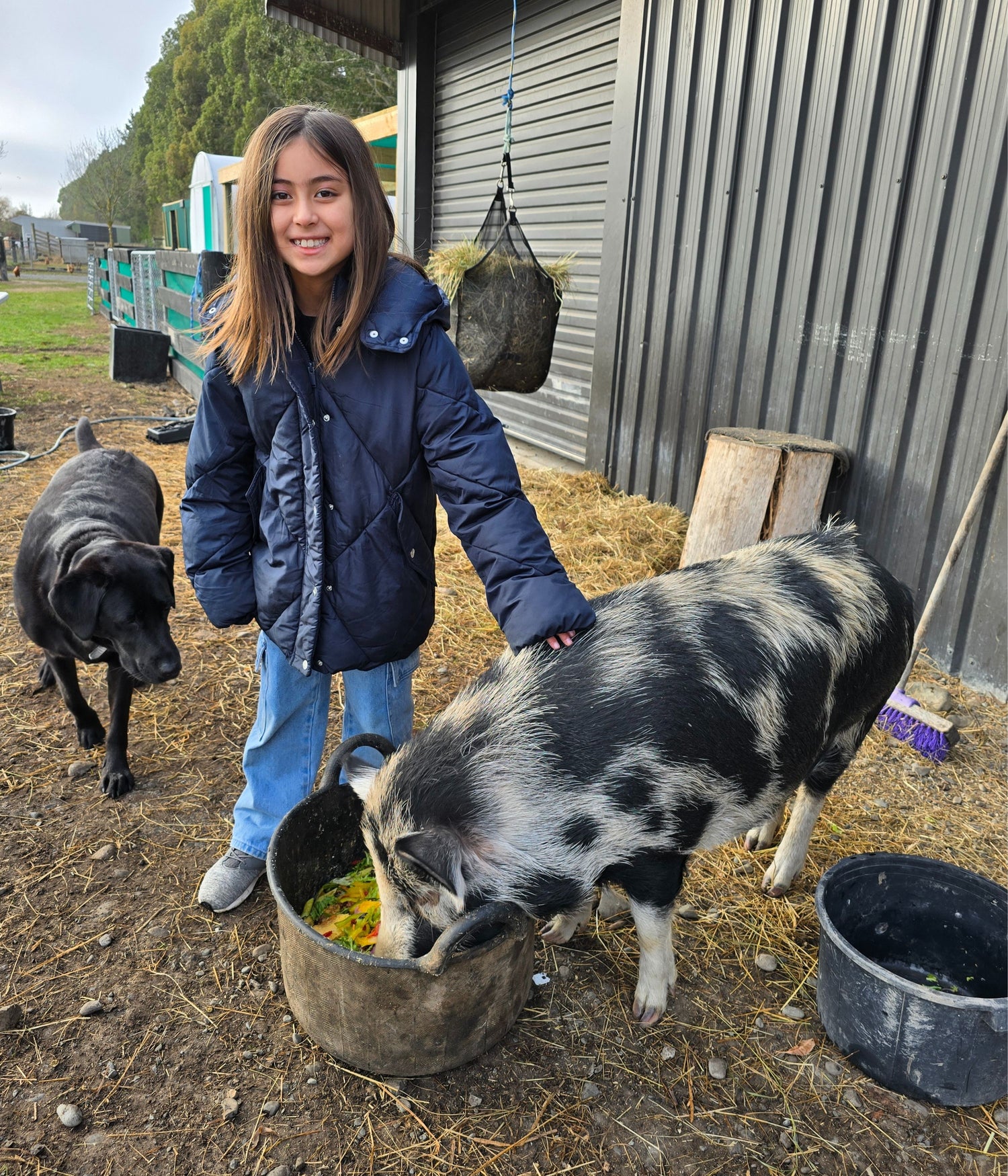 These little fellas are still growing. They are of the Arapawa breed and it has been suggested that Captain James Cook bought them out in 1773 and put them on Arapawa Island in the Marlborough Sounds. These boars can grow between 120kg up to 180kg. Arapawa’s are a heritage breed. The mane on their back will stand up if alerted but do not become aggressive. In 2007 NZ Post put a picture of the Arapawa’s on their $1.35 cent stamp in celebration of the Chinese Year of the pig. These two just love belly rubs all day long!