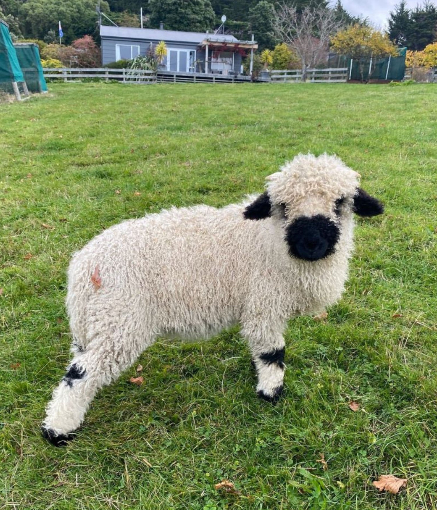 Switzer is my gorgeous black nose Valis whether lamb. I named him Switzer as this breed originated from a small village called Valis (vay-lay). They have been around since the 15th Century but only in 1962 they became registered as a sheep breed. There are only 19,000 of them in the world. They are known to be the quietest breed of on the planet with their lovely, docile temperament.