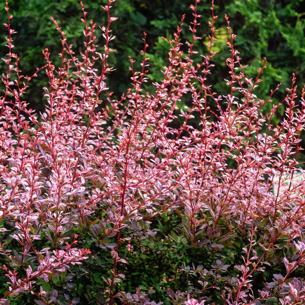 A small very striking colourful shrub. The leaves of the young shoots are purple mottled with silver, pink and bright rose later becoming purple.