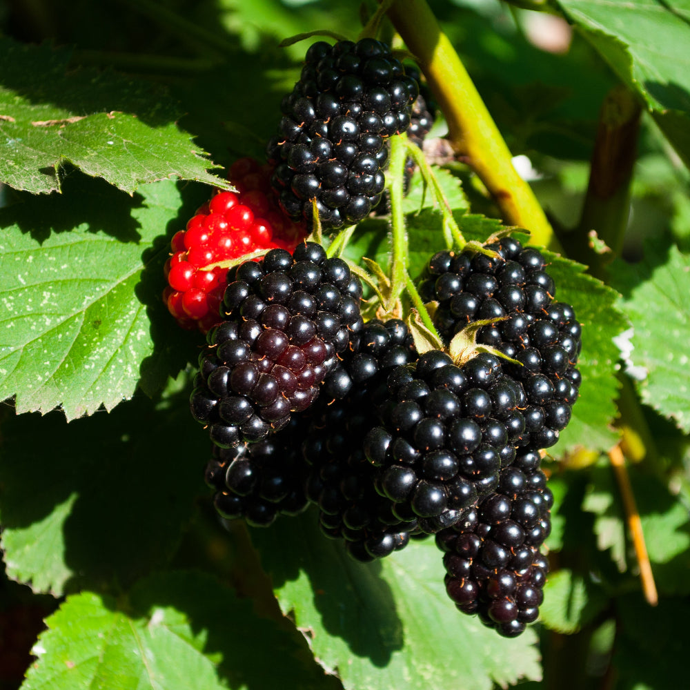 Fruits December through January. Tasman is almost thornless Boysenberries and is a popular variety. Growth similar to raspberries needing support for the long canes. Sunny fertile position. Frost tolerant Prune by removing canes that have fruited to ground level.