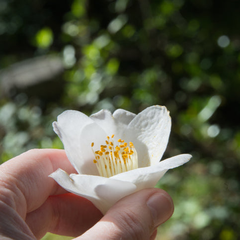 This camellia has an upright, open form and is suitable for general garden borders, specimen or large containers.