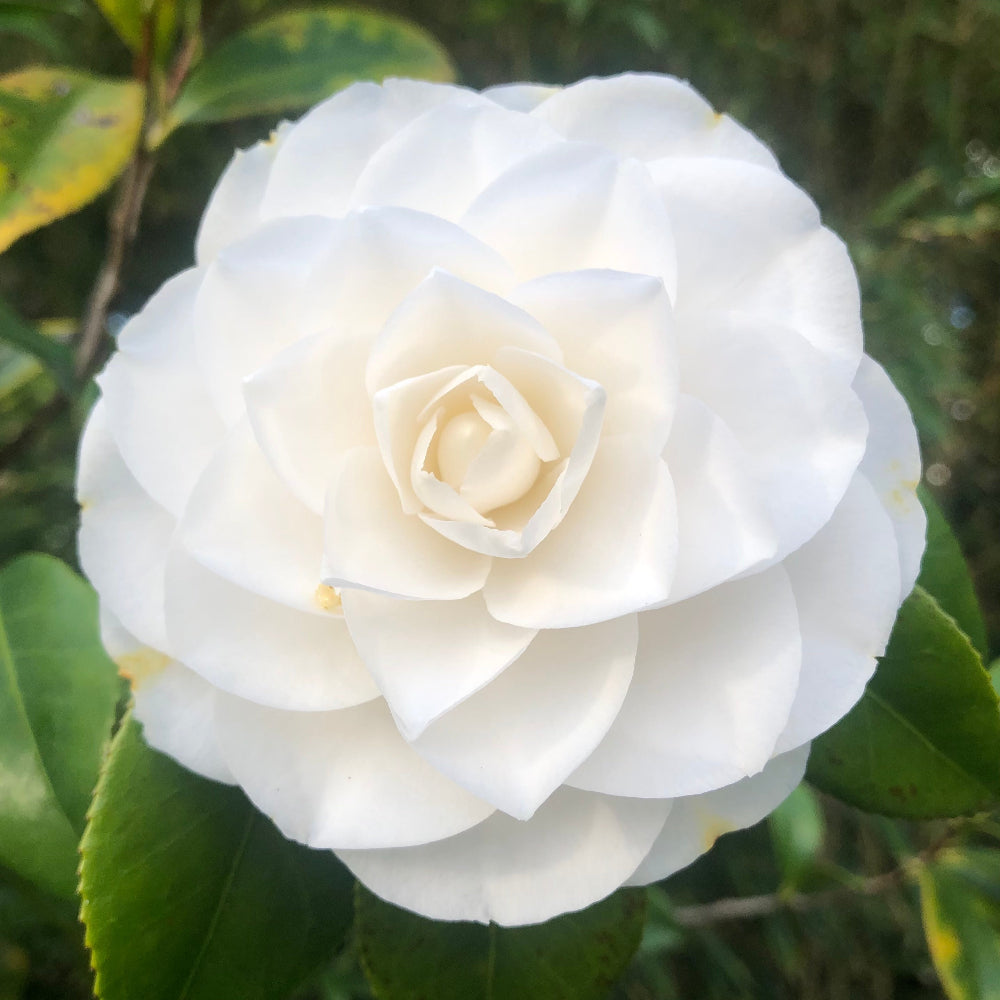 This is a delightful little Camellia with semi-double flowers that are white with pink tinges on the petal edges and backs. In full bloom the overall effect is very soft and pretty. An added bonus of fragrance makes this a definite must have.