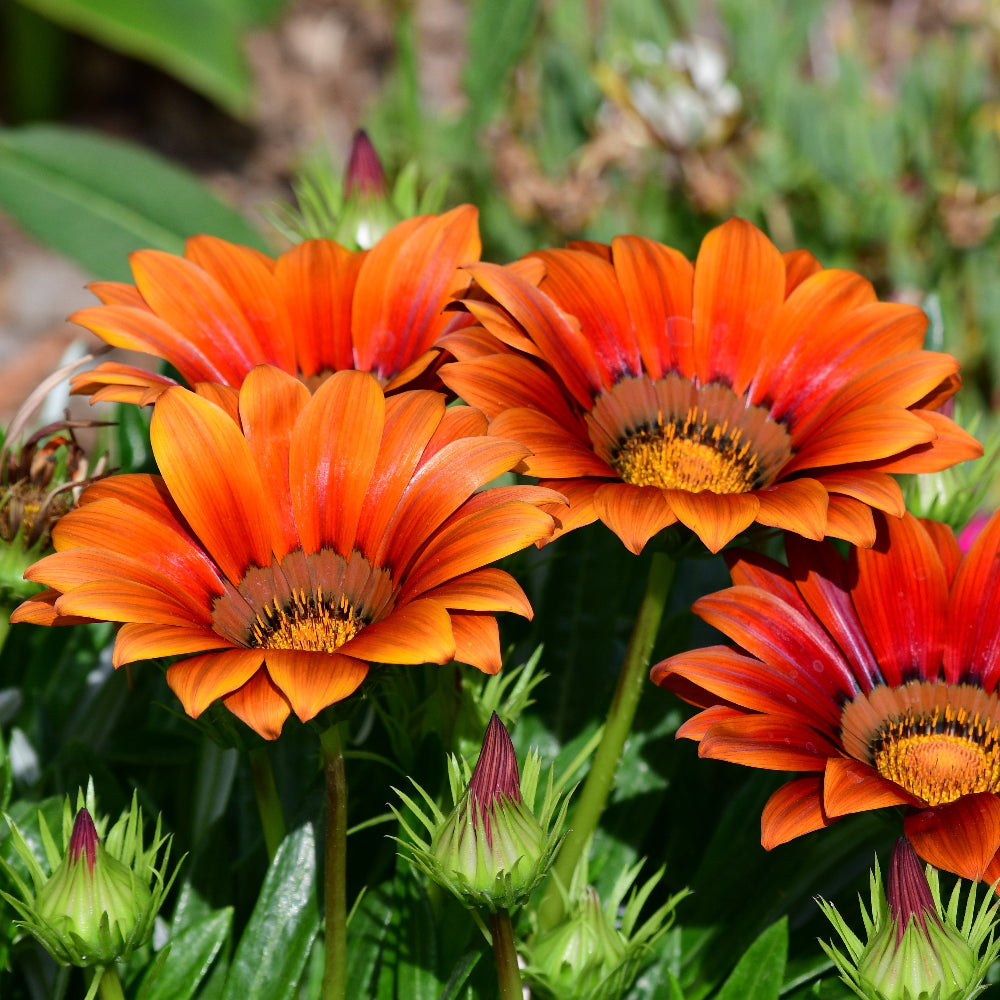 Gazania flowers from spring through to autumn. It tolerates dry conditions and it's good for mass planting on dry slopes, bedding, ground cover, edging and in pots.